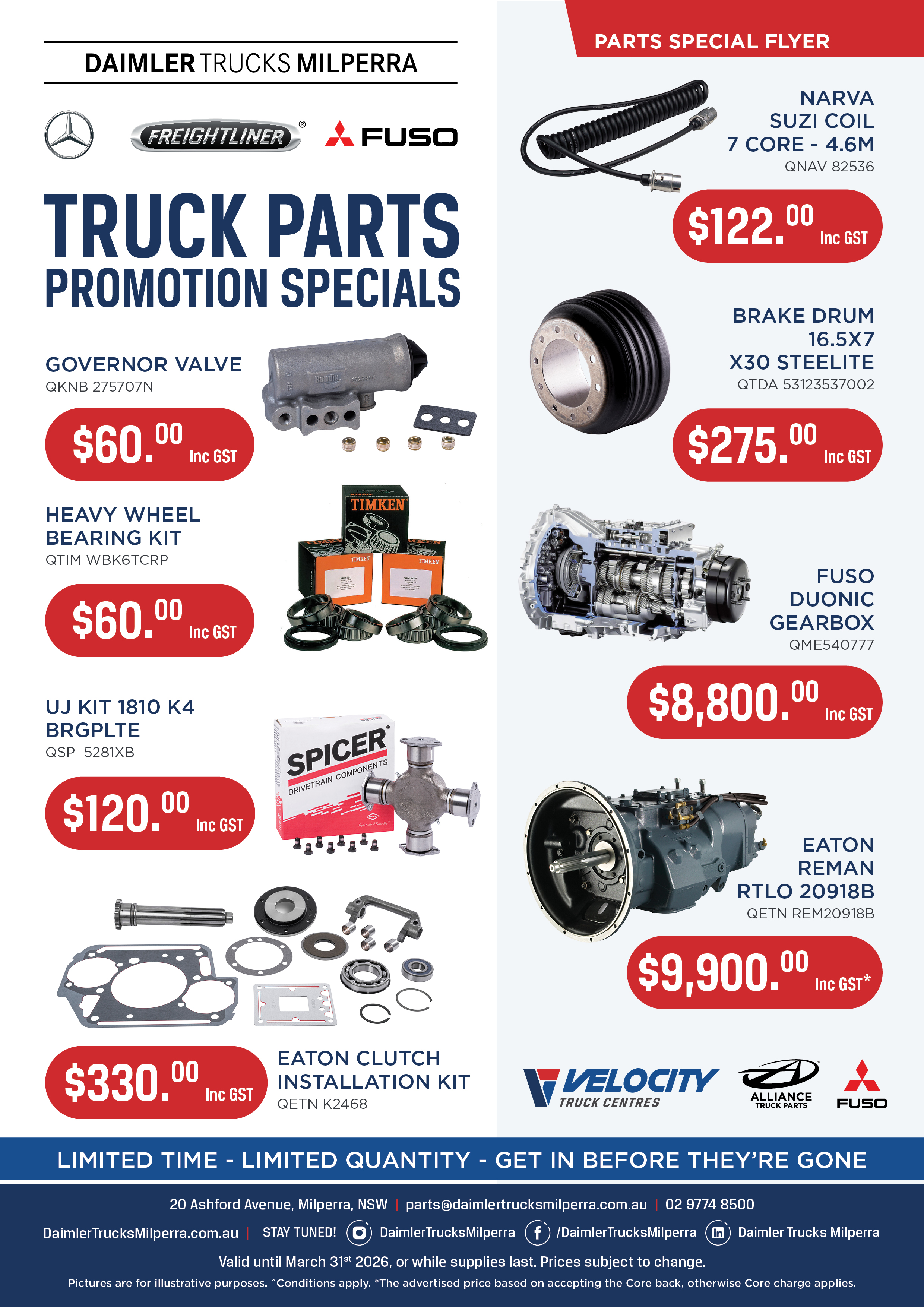 Exclusive to Daimler Trucks Milperra PARTS SPECIALS